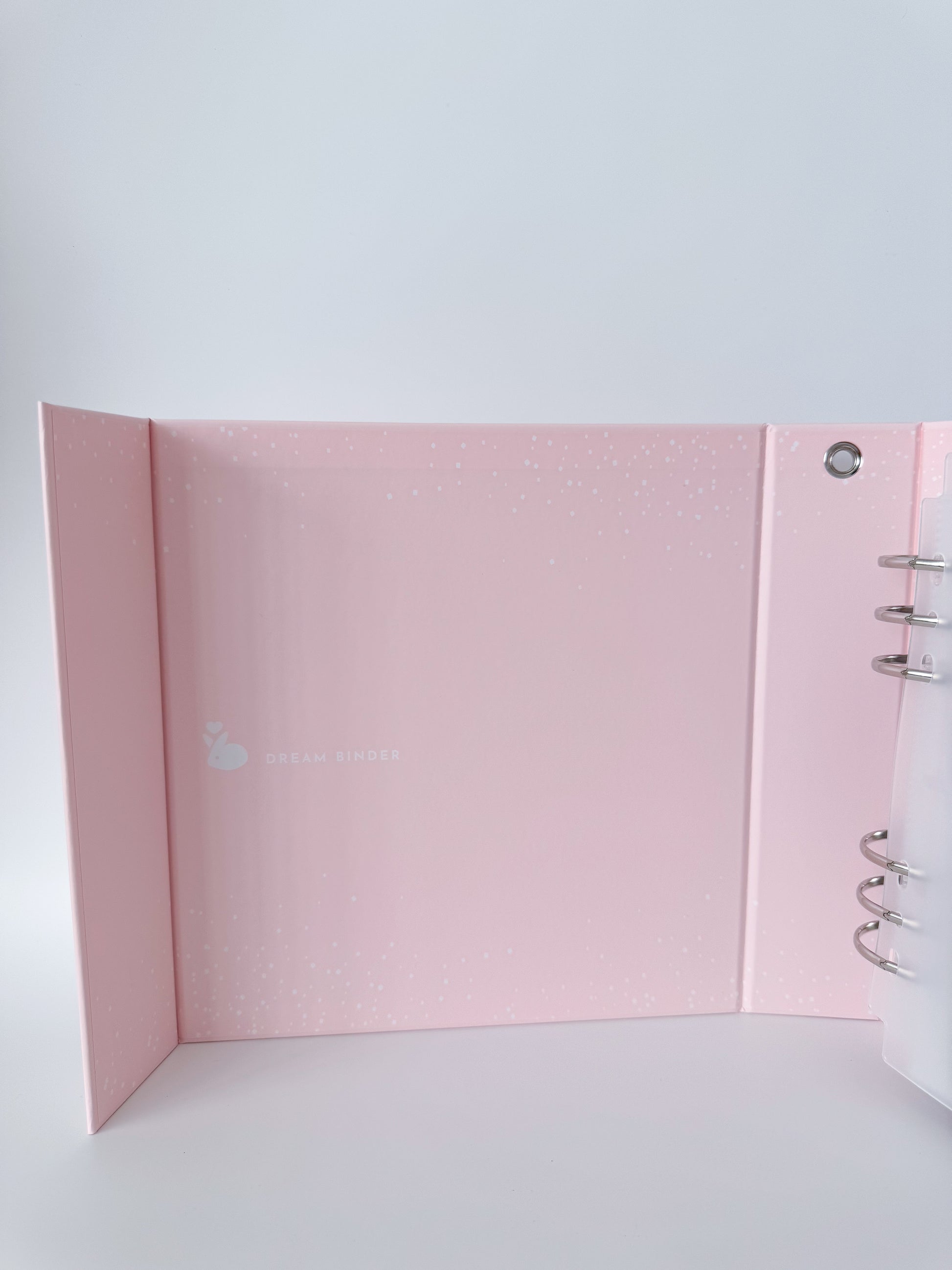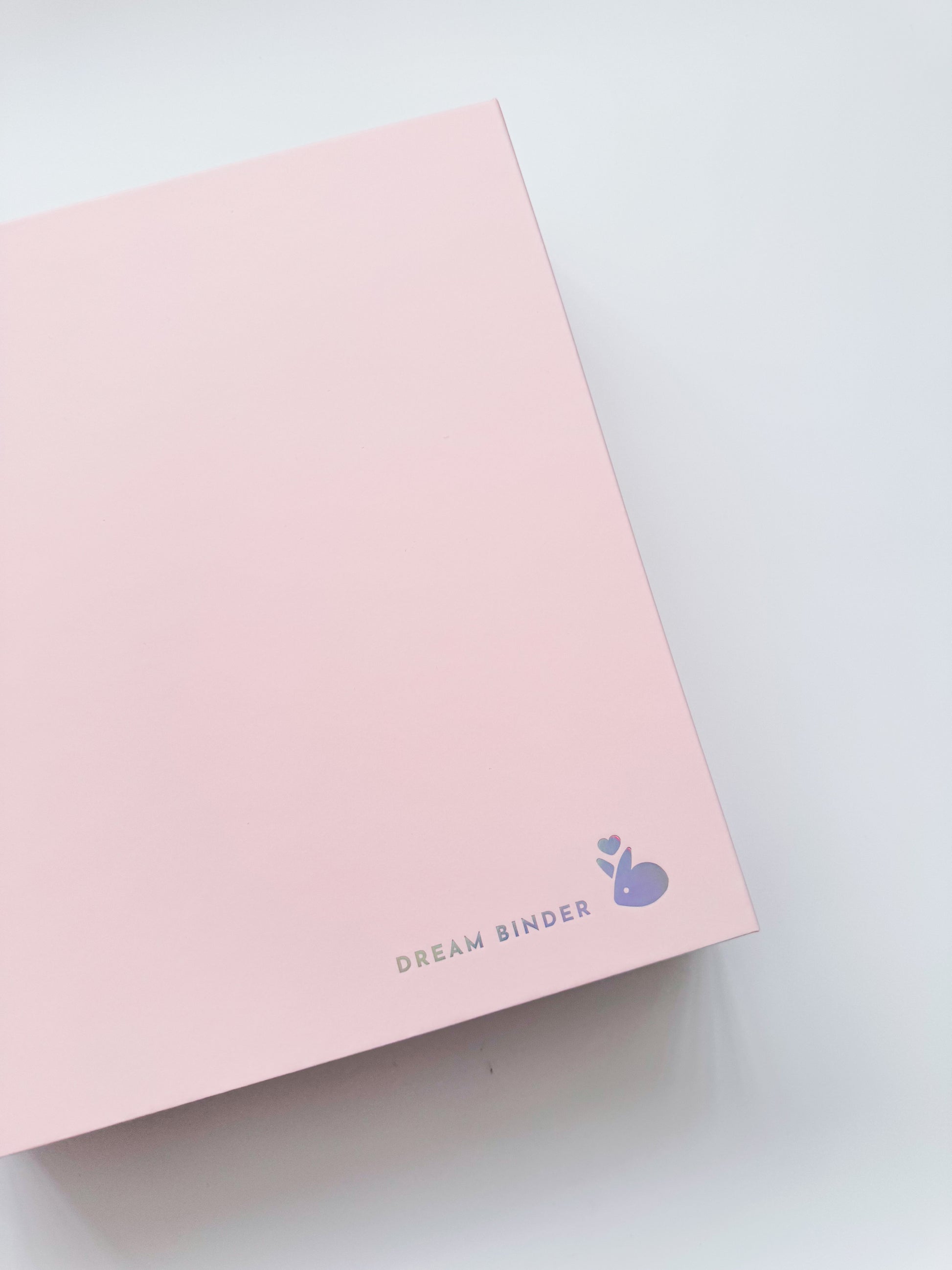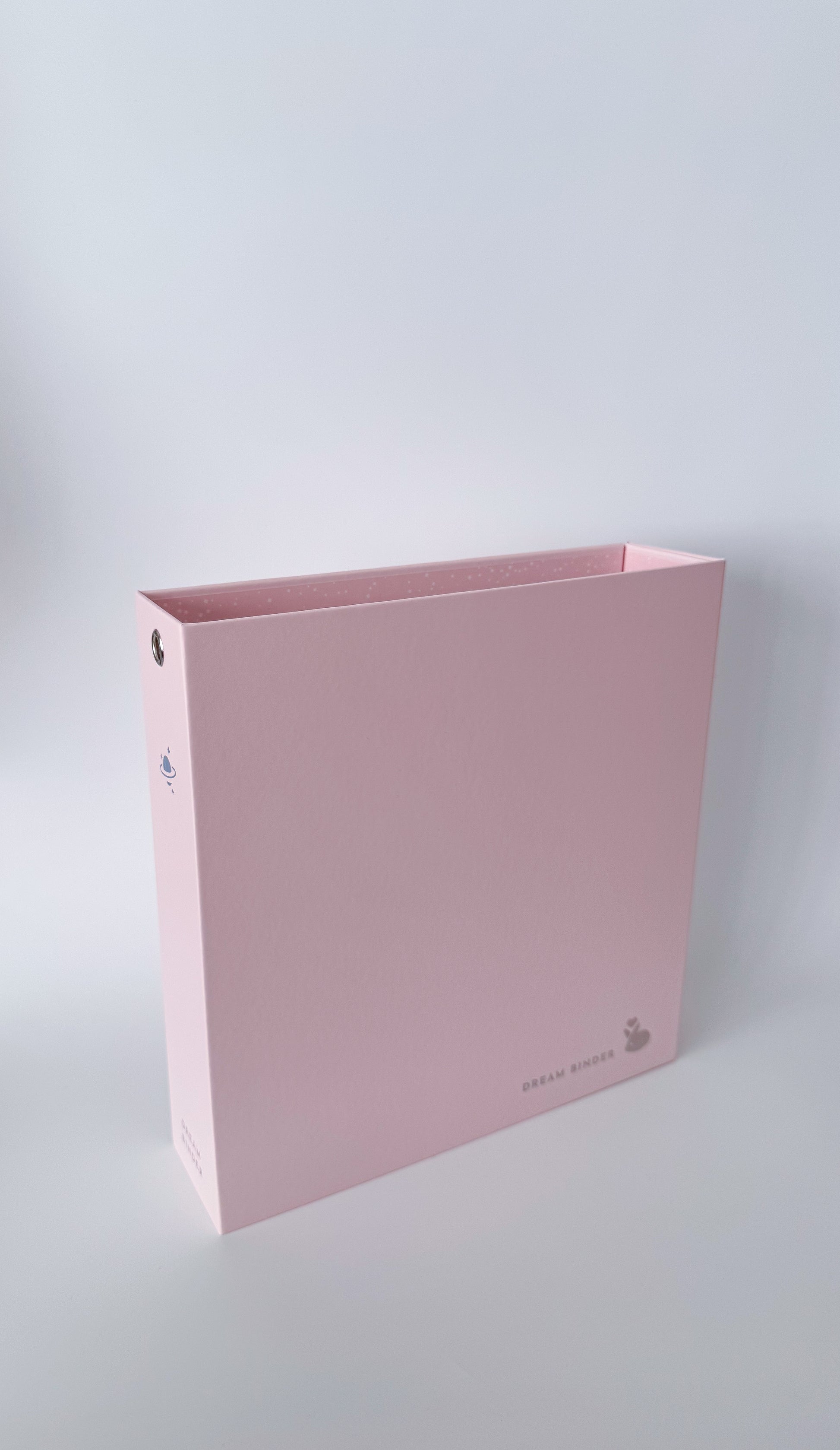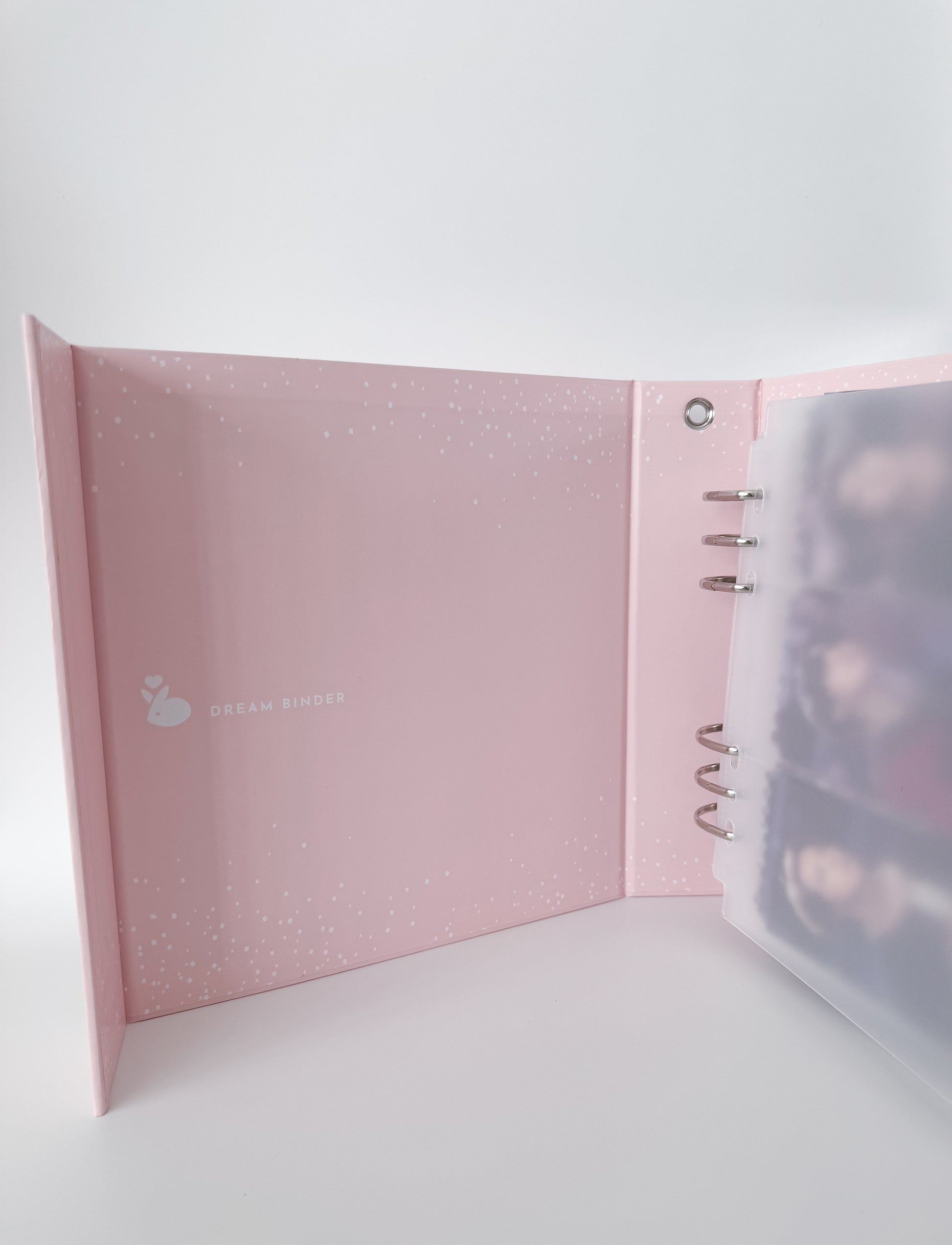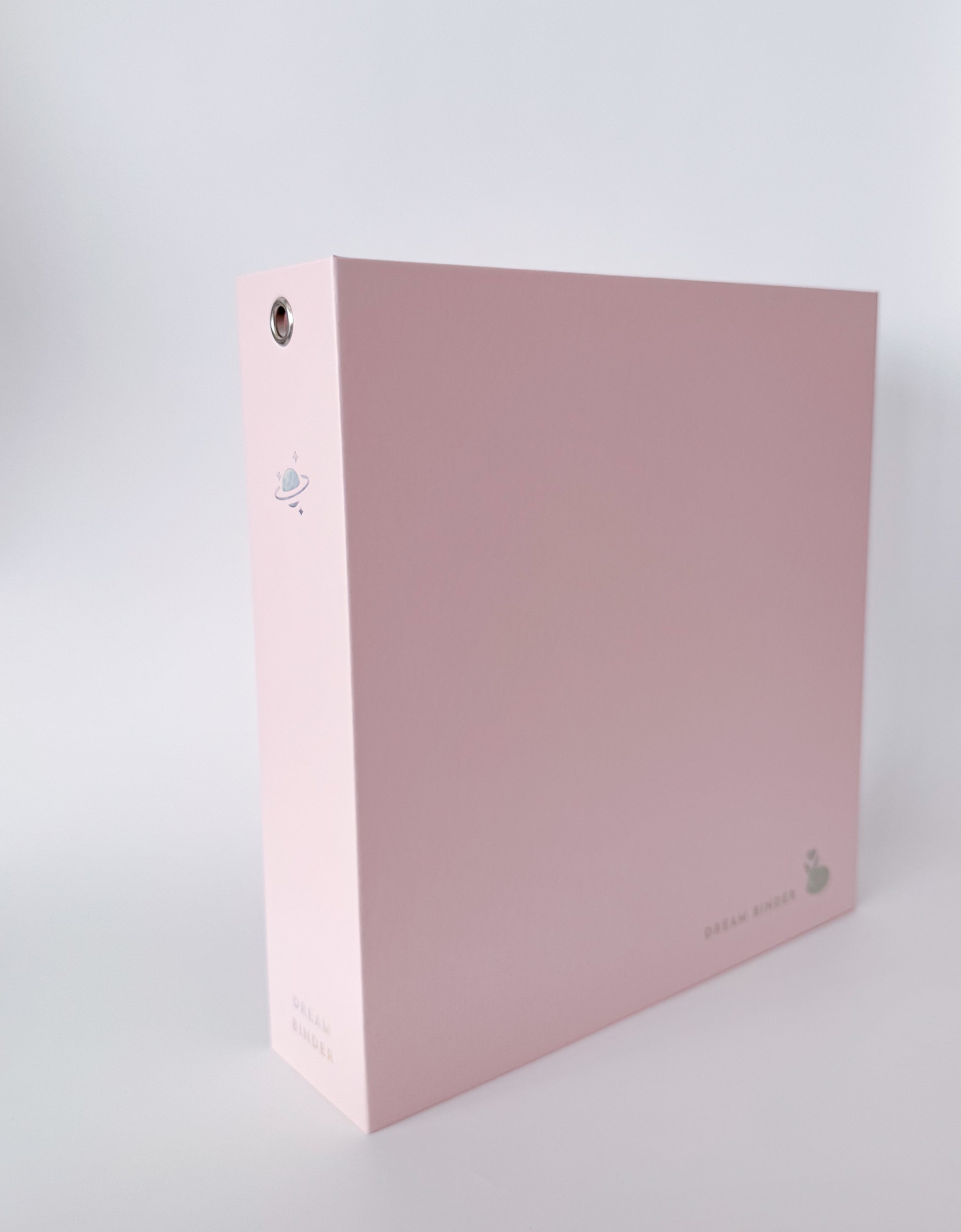 Cosmic is a matte pastel pink matte shade with debossed rainbow foil detail. The spine features a silver eyelet and planet with rings logo. Each Dream Binder comes with a full page frosted PP backboard and 1 pack of binder pages. Each pack consists of 10 pages.