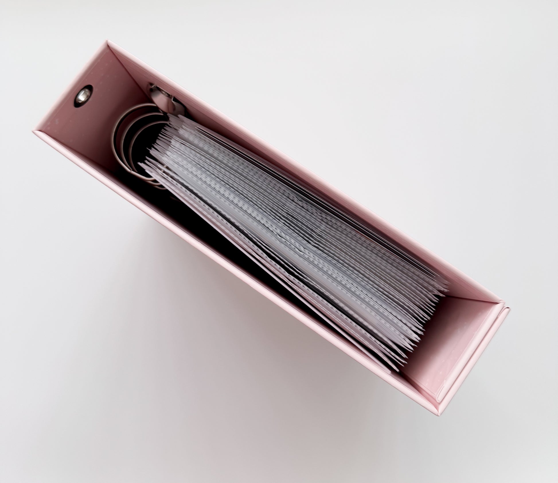 A5 XL has the same features and build as our original A5 binder but with a thicker spine and bigger ring! The A5 XL has a 2 inch D-ring that can hold up to 50% more binder pages than the original A5.