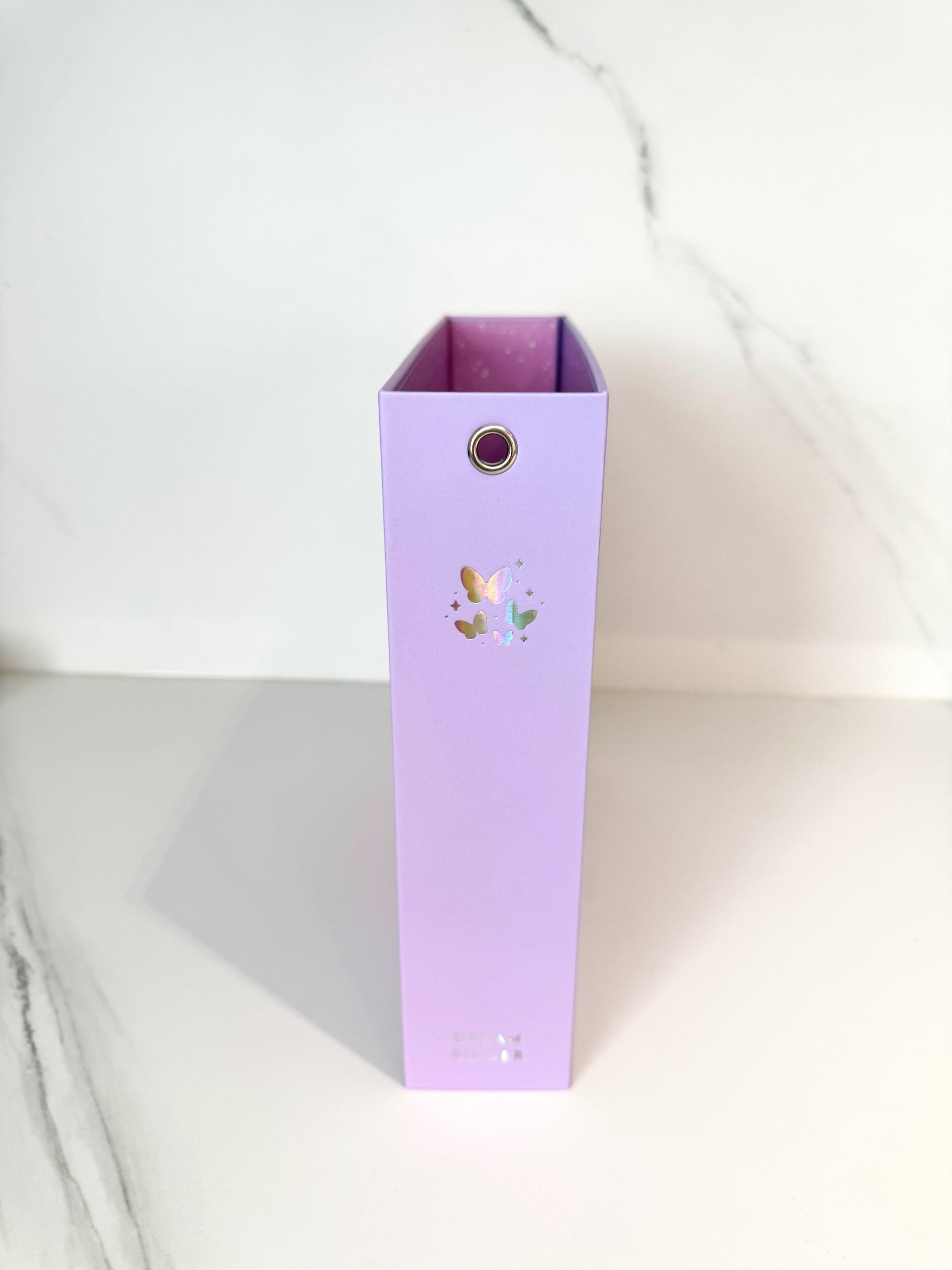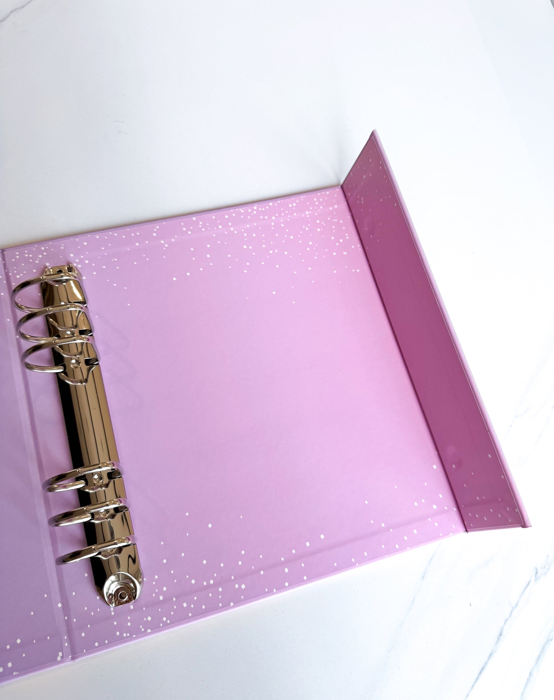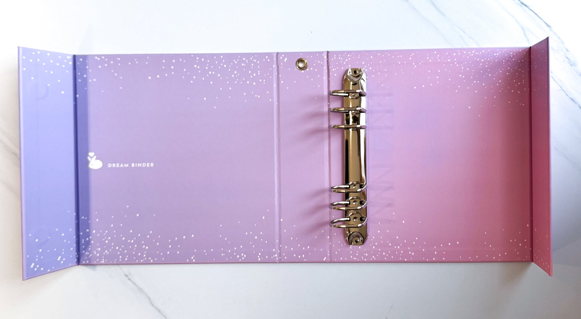 Inside, you’ll find a fully printed interior, setting a dreamy starry backdrop for your collection. 3 sturdy D-rings keep pages secure, and a magnetic side closure adds both functionality and a satisfying snap of security. Each binder also comes with a full-page PP backboard to support your pages and keep everything aligned.